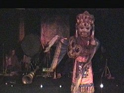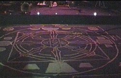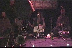Выступление-ритуал было продумано от начала и до конца. Постепенно сознание освобождалось от пут мыслей, и я весь ушел в созерцание. Не успев прочитать проспект, посвященный программе “Мандала Вселенной”, я интуитивно чувствовал суть происходящего на сцене. Самозабвенная игра музыкантов позволила абстрагироваться от всех отвлекающих факторов и слиться с течением звука. Слова о том, что “музыканты владеют уникальными методиками горлового пения”, оказались абсолютно верными. Мантры, столь непривычные для европейского уха, раскатывались по пространству московского клуба, готовя зрителей к появлению Божества Четырех Кладбищ. Неистовый, полный экспрессии, танец, отмел прочь все сомнения в священности древнего обряда. Выверенные, точные движения, абсолютно чуждые естественно-бытовой человеческой пластике, устрашающий взор костюм (выполненный согласно всем канонам этой мистерии) – все медленно подводило нас к центральному моменту действа – построению мандалы Вселенной. На глазах у зрителей происходило созидание микрокосма, своеобразной проекции мира. Сей акт сопровождался медитативой композицией, в которой, по словам участников, “сплетены воедино тибетские фольклорные мотивы и напевы индейского племени Навахо”. Правда, параллельно инструментальной части вокалист (он же гитарист) читал довольно длинный текст на английском, в чем я усмотрел не вполне приятную эклектику. До этого гармония самозабвенного, аутентичного звучания коллектива нарушалась еще и резкими всплесками гитары-синтезатора, что слегка раздражало, но в целом не нивелировало общего приятного впечатления от происходящего. Вероятно, сведение воедино авангардных европейских направлений в музыке (элементы ambient и noise) и традиционных тибетских мотивов составляло часть глобального замысла “Лунгта”. Что же, у перформанса наметилась еще одна грань, и я не возьмусь судить, была она лишней или нет.