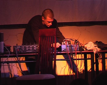 Как я уже говорил, Вороновский постоянно эксперементирует, и выступления Cisfinitum музыкально часто весьма отличаются. Для данного мероприятия была подготовлена "жесткая" программа, которая была конечно поинтересней Kryptogen Rundfunk, но тоже мягко говоря не моё. ASH стоял на сцене с жутко довольной, пафосной физиономией в балахоне популярной в прошлом тяжёлой индустриальной группы Godflesh и время от времени ударял по струнам своего баса, Вороновский как "младший научный сотрудник" вертел ручки своих машиночек и всё бы ничего, если бы я уловил во всей этой индустриальной какофонии хотя бы подобие ритма и мелодии. Увы, - не уловил.
